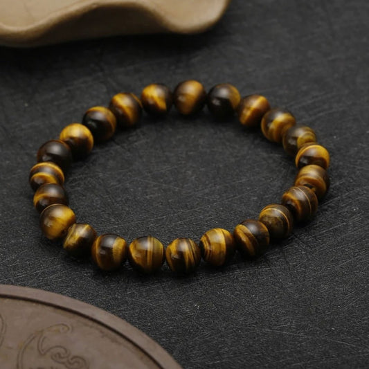 PULSERA ABUNDANCIA DORADA (Ojo de tigre 8 mm)