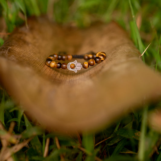 BRAZALETE MANO HAMSA CON OJO DE TIGRE 6MM