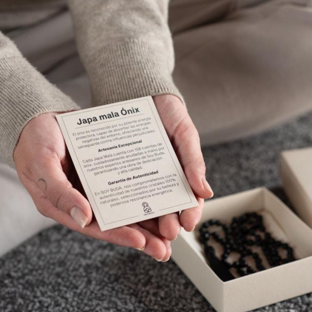 Quiero compartir mi experiencia con el Japa Mala Ónixque adquirí recientemente en Soy Buda. Desde que lo recibí, me ha brindado una profunda conexión espiritual y una sensación de paz interior.